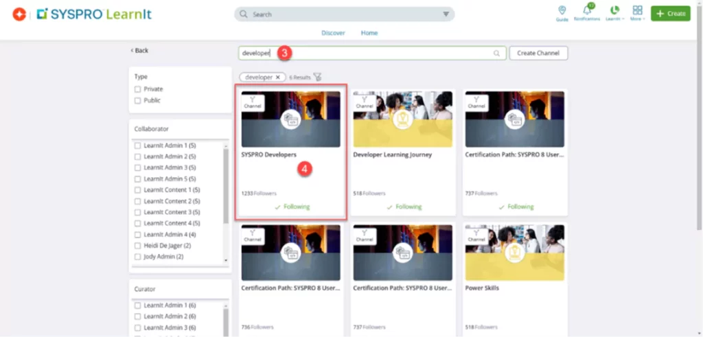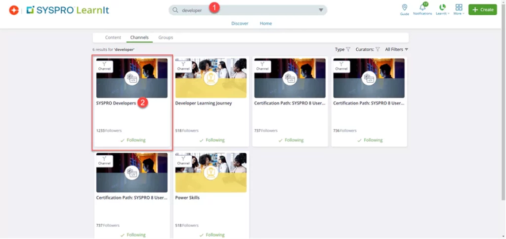 Enter “developer” in the search bar and select the channel.